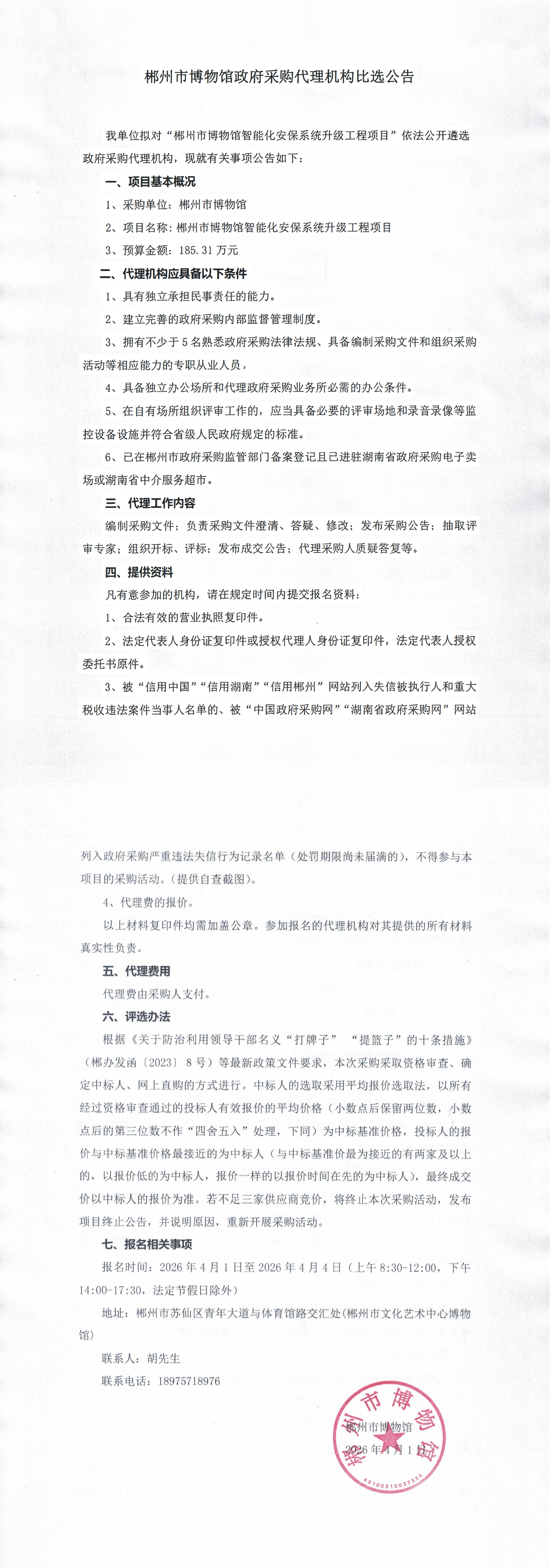郴州市博物馆VR数字化建设项目 成交结果公告